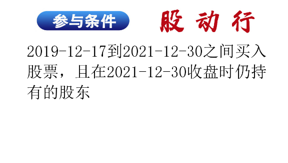 但需要留意的是,参与的前提条件:2019-12-17到2021-12-30之间买入股票,且在2021-12-30收盘时仍持有的股东。