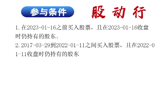 但并不是所有股东都可以参与,是有条件的,即1.在2023-01-16之前买入股票,且在2023-01-16收盘时仍持有的股东。